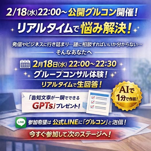 2/18(水)22:00〜公開グルコン開催!